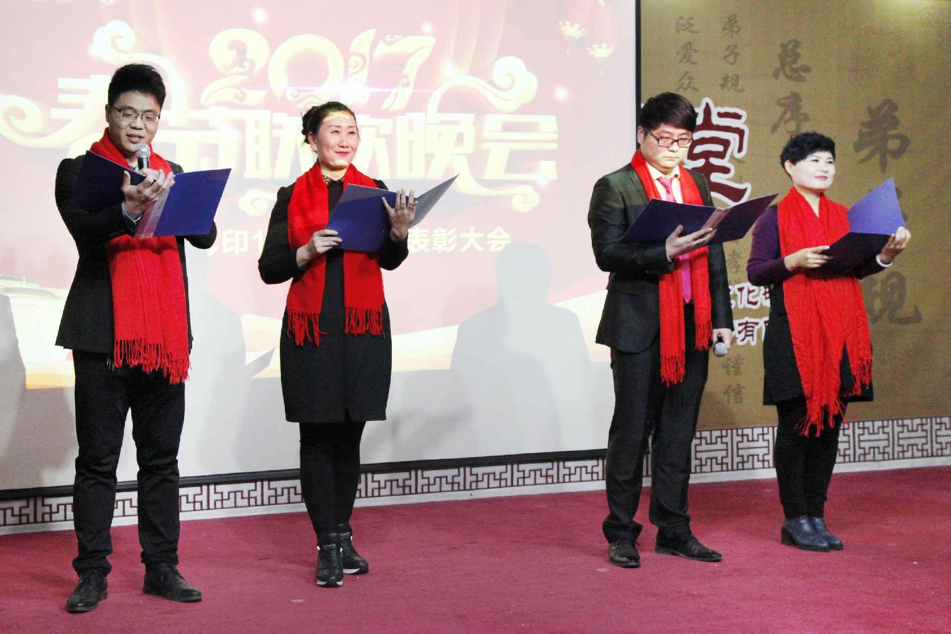 南京鑫宇文化遗产推广有限公司2016年度总结表彰大会于2017年1月24日下午在公司五楼大会议室隆重举行。会上,颜总作了重要讲话:总结了公司2016年的工作及2017年的目标规划,既肯定了成绩也指出了不足,让我们对17年的发展充满信心。全体员工热情满满,纷纷表示为公司17年再创辉煌,我们撸起袖子加油干!大会并对16年度劳动模范、先进个人、先进班组、岗位技术最佳能手、在公司工作8年以上老员工及业务销售突出贡献者进行奖励,颁奖期间穿插进行丰富多彩的文艺节目表演,特别是精彩不断的现场抽奖环节让现场气氛达到高潮,大会始终在喜庆祥和、欢声笑语中进行!!